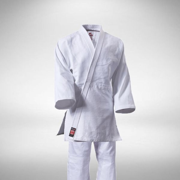Dziudo kimono vaikams DanRho Dojo-line skirtas vaikų ir paauglių dziudo treniruotėms ir varžyboms. Dziudo kimono pagamintas iš 100% balintos medvilnės. Švarkas sustiprintas krūtinės ir pečių srityse. Kelnės su elastine juosta ir raišteliu, sustiprintais keliais. Komplektą sudaro: švarkas, kelnės ir baltas diržas. Medžiagos svoris – 425 g/m².